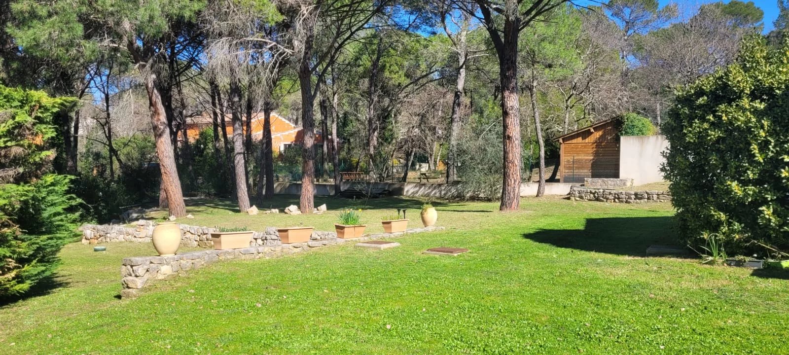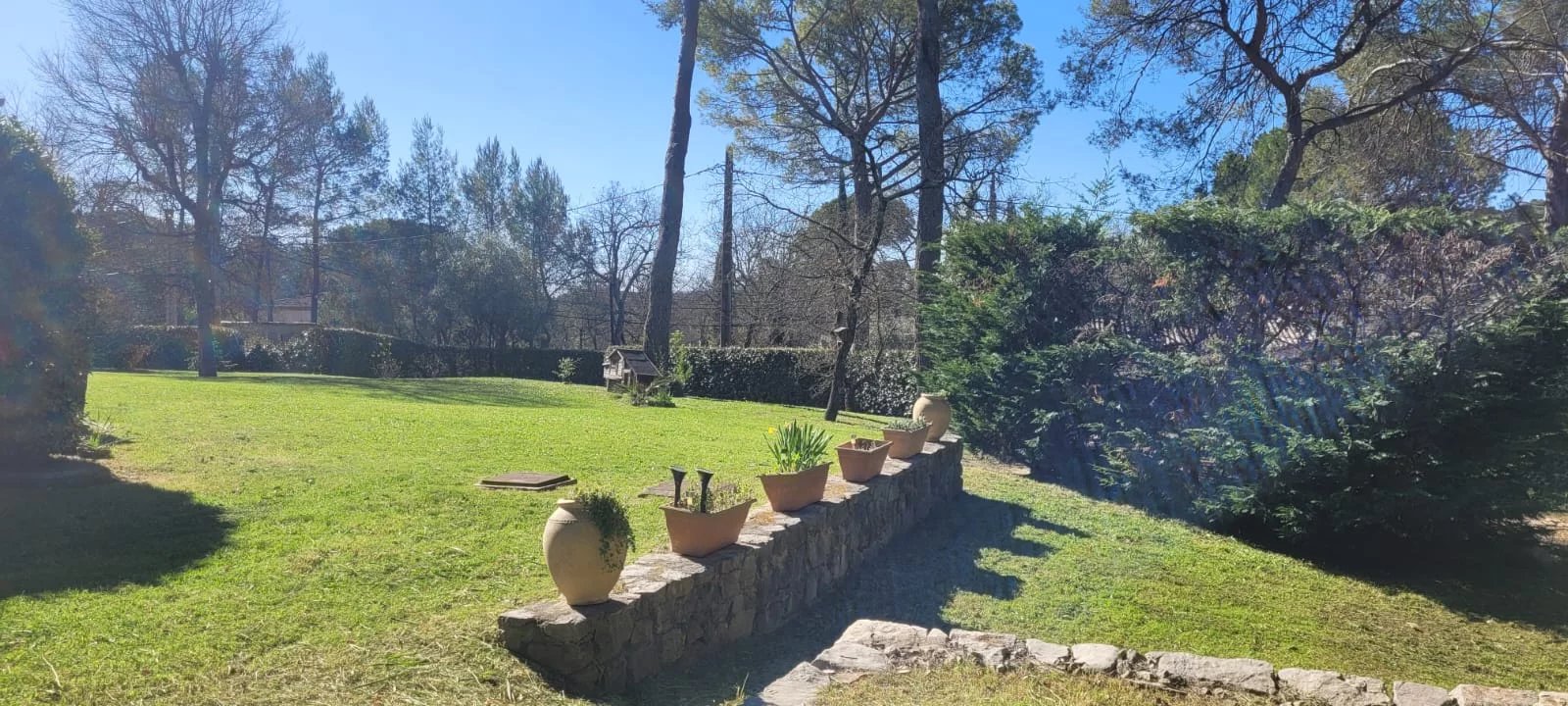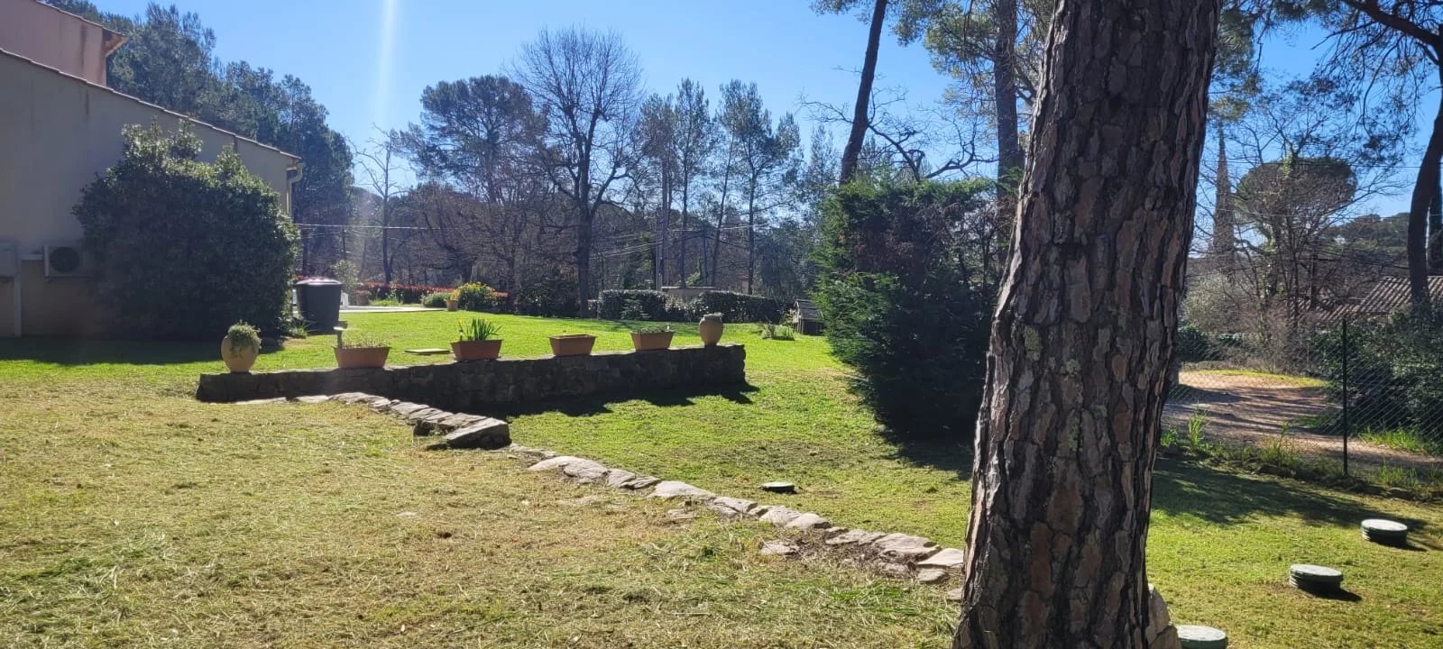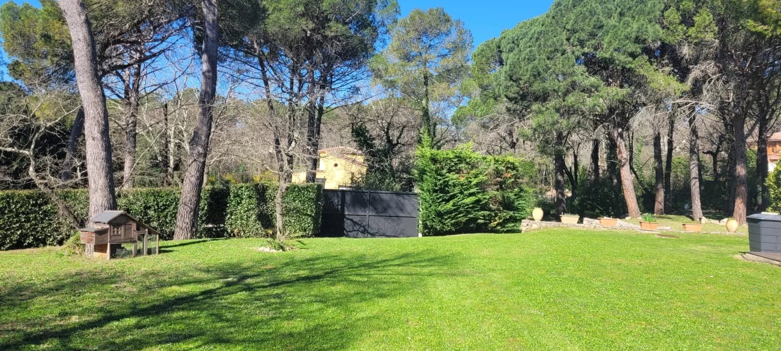 Un jardin de 3000m2 environ plat, clôturé et arboré.